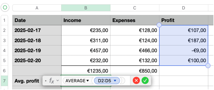 Program evaluation. Evaluating an XL program { x1 = e1; …; xn = en } consists in determining the numerical value vi of each variable xi. These are the values that are displayed in the cells of the corresponding spreadsheet.